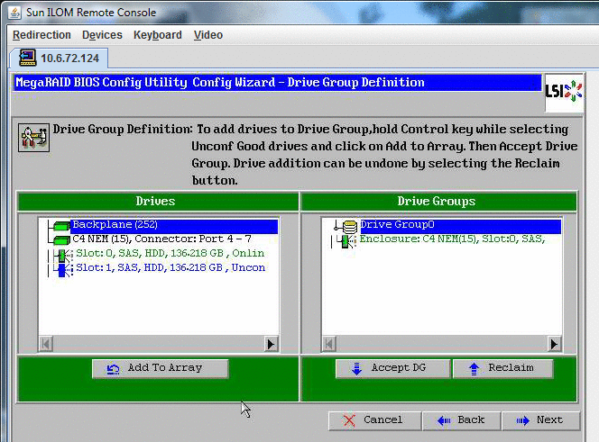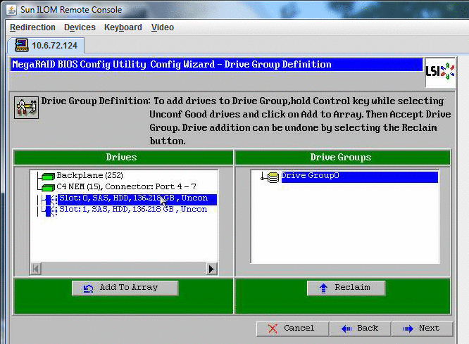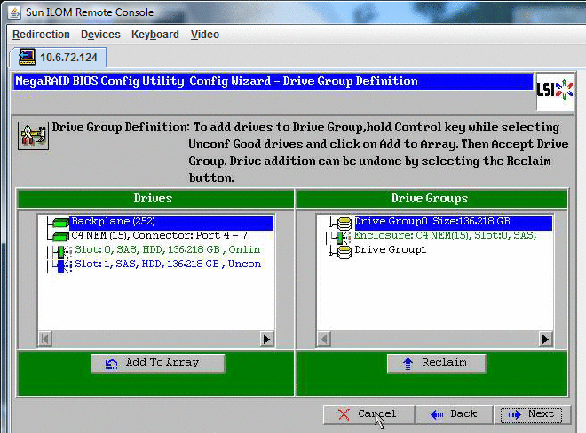 注 - 您可以通过单击 "Reclaim" 按钮撤销驱动器组的选择。