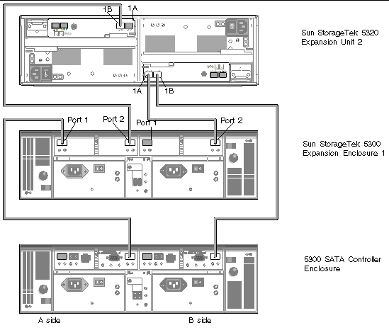 If you have a 5300 controller enclosure with SATA drives, use the following procedure to connect a new 5320 expansion unit to the system. Refer to FIGURE 3-12 for port locations.
