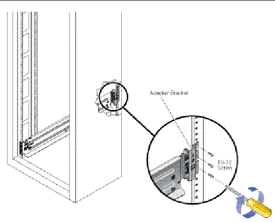 FIGURE 8 Securing the Adapter Brackets to the Cabinet Rail (J4200)