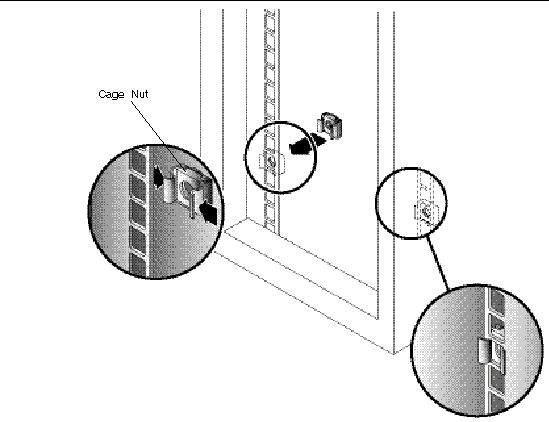 FIGURE 9 Inserting Cage Nuts Into the Cabinet Rail Mounting Holes (J4200)