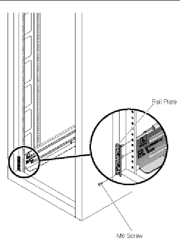 FIGURE 3 Attaching the Rail Plates to the Cabinet Rail for the J4200 Array
