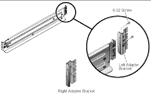 2. Insert and tighten two 8-32 screws (four 8-32 screws for the J4400) to secure the adapter bracket to each rail.