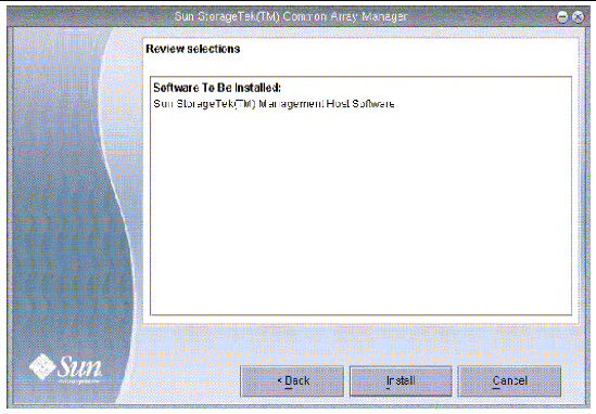You can verify the installation by bring up the Sun StorageTek Common Array Manager browser or CLI prompt, as discussed in Starting the Management Software of the next chapter.