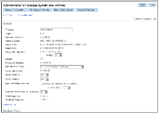 You can also update the system time and date on the Administration page for the array in the browser interface. When you set the time and date for a selected array, the values are updated for all arrays registered with this management software.