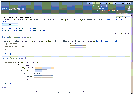 Sun Connection is a remote notification service that submits device registration and fault event data to a Sun Microsystems service database. Common Array Manager provides the interface to activate Sun Connection on behalf of the devices it manages. It also provides the fault telemetry to notify the Sun service database of fault events on those devices. Depending on the Service Offering implemented by your service group, the data can be used to monitor the health and performance of your storage devices, improve system performance, and enable Sun service to respond faster and more accurately to critical on-site issues.