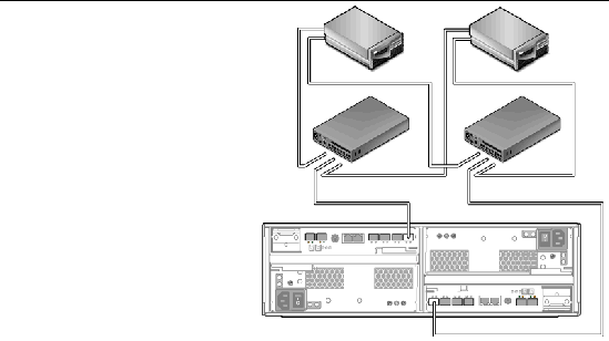 Note - The configuration in FIGURE 4-4 is not supported for use in a Sun Cluster environment. |