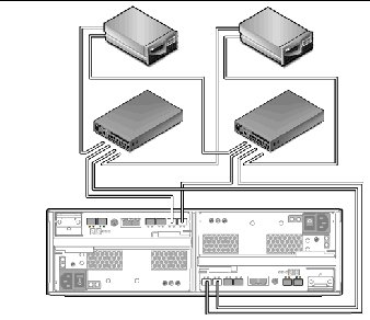FIGURE 4-4 shows the data hosts connected through switches with cross-connections.