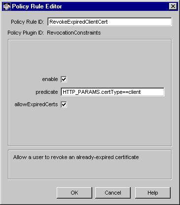 Allows or rejects requests for revocation of expired certificates. For details, see RevocationConstraints Plug-in Module.