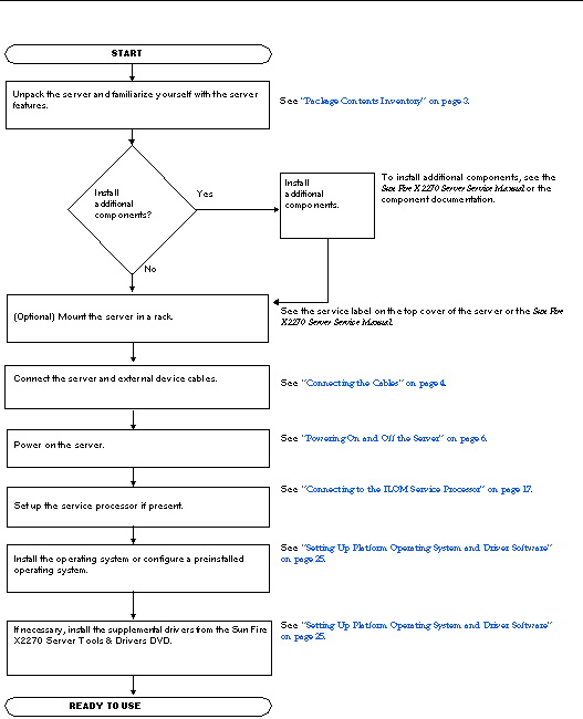 Use the flowchart in FIGURE 1-1 to assist you with the server installation process.