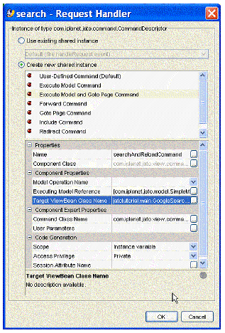 You have created four search fields and four result fields for this page component, but you will need a few more search fields (required fields by the Google Web service). These are added and bound to the GoogleSearchModel one at a time. You want these fields to be added as something other than text or static text fields, which is why you add these outside of the Page wizard.