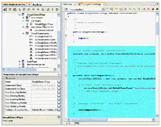 1. Under the GoogleSearchPage, expand the JSPs node and double-click the GoogleSearchPage JSP to open it in the IDE's source editor.