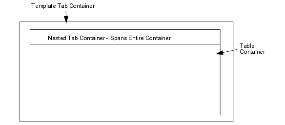 Stretching a Tab Across an Entire ContainerFigure 5-1 shows an example of a tab that spans an entire container. In this figure, the top-level container is a template tab container. Nested within it is a table container, and nested within that is a tab container, in which the tab spans the entire container.