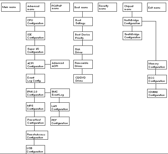 FIGURE 2-4 BIOS Utility Menu Tree for Sun Fire X4540