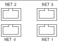 These servers each have four 10/100/1000BASE-T Gigabit Ethernet ports connected to individual Network Interface Cards (NICs). The chassis labeling of the physical ports is shown in FIGURE 1.