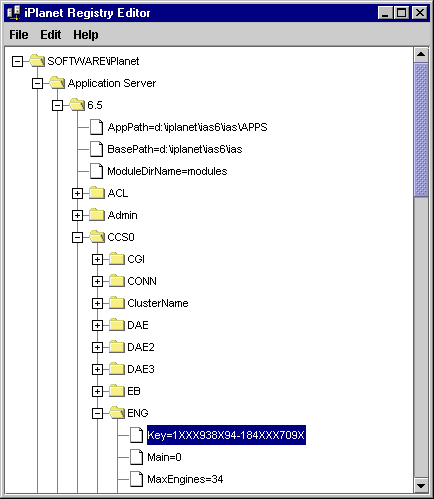 SOFTWARE\iPlanet\Application Server\6.5\CCS0\ENG