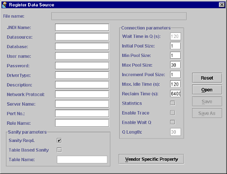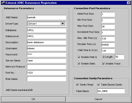 For more information on the parameters in this dialog box, please see the JDBC 2.0 Extensions specification.