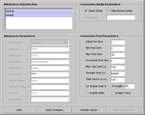 Note When you select multiple datasources, the Connection Pool Parameters are returned to their default values.