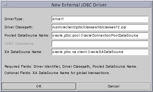 - Enter the Driver class path, for example Oracle_Home/jdbc/lib/classes12.zip
