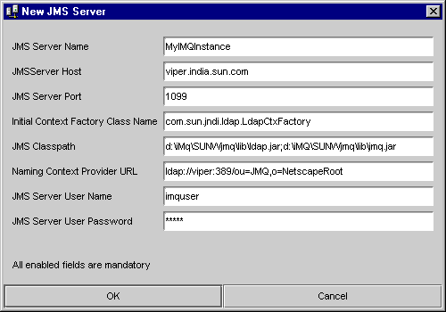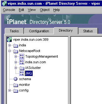 - Manually create the Factory Context and configuration parameters in the iPlanet Directory Server, under ou=JMQ,o=NetscapeRoot.