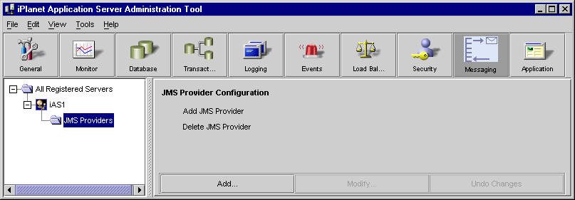 To configure a JMS provider, you must first install the messaging middleware. By default, iPlanet Application Server uses the iPlanet Message Queue (iMQ) for Java, 2.0 SP1. iMQ for Java, 2.0 SP1 is bundled on the iPlanet Application Server installation CD. If you don't have the installation CD, you can download it from http://www.iplanet.com/products/iplanet_message_queue/home_message_queue.html.