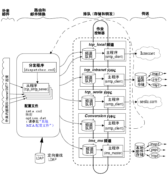邮件传输代理,或称 MTA图 8-2),是 Messaging Server(图 8-1)的一个组件,它可以执行以下功能: