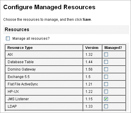 - 「リソースリスト」で、「JMS リスナー」チェックボックスを選択します。