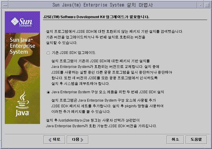 ��ġ �wα����� ���� ��Ұ� Java Enterprise System �䱸 ����; ��w�Ѵٰ� ǥ���� ������ �� ��d; �ݺ��մϴ�.