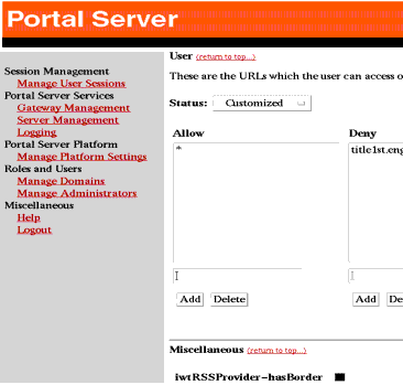 Locate the User URL Access attribute with the allow and deny windows, as shown in Figure 2-5.