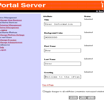 Click the Submit button at the bottom of this page to update all changes made to the Profile Server.
