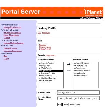 From the Channels section, Available Channels list, click the iwtUserInfoProvider.