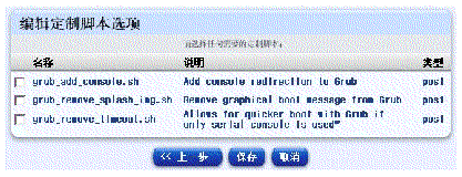 通过“脚本”功能,您可以将脚本上载到“编辑定制脚本选项”表,您可以在该表中选择要添加到配置文件的脚本。