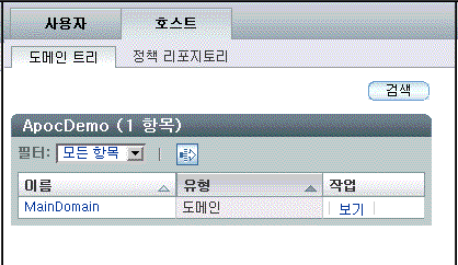 호스트 탭 페이지에는 각각 도메인 트리 및 정책 리포지토리라는 이름의 하위 탭이 두 개 있습니다.