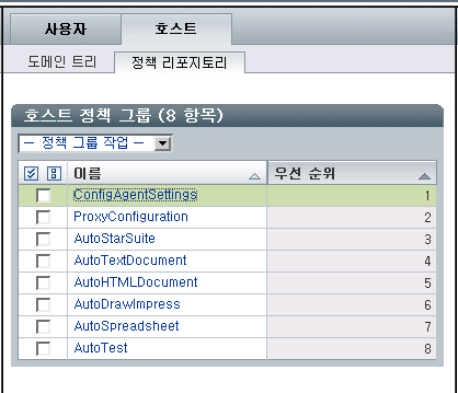 정책 리포지토리는 사용자 정책 그룹이나 호스트 정책 그룹의 컨테이너입니다. 정책 그룹은 우선 순위에 따라 정의된 순서대로 나열됩니다.