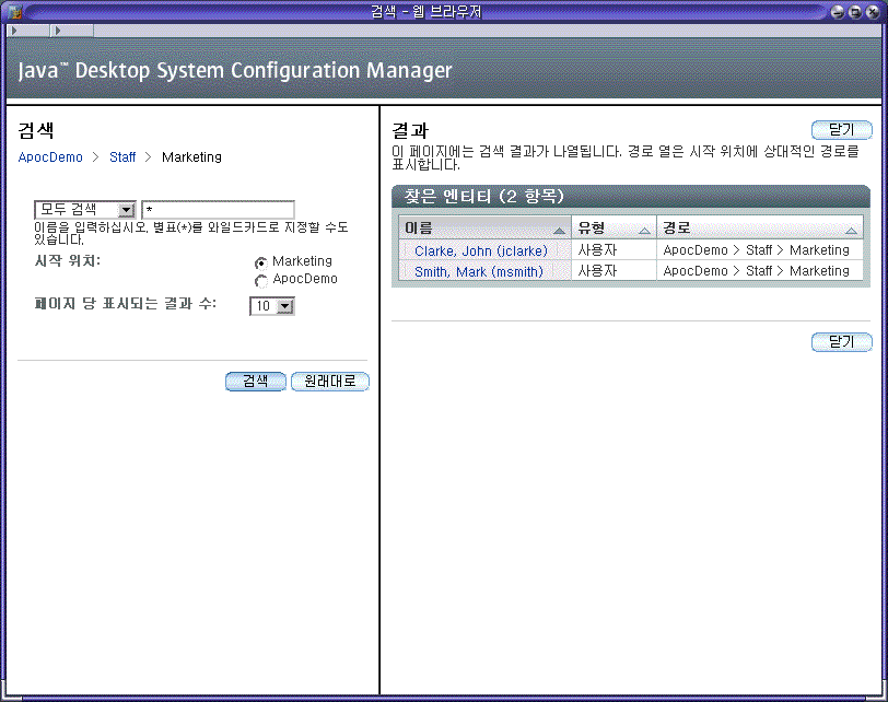 검색이 완료되면 검색 결과가 포함된 테이블이 검색 영역에 표시됩니다.