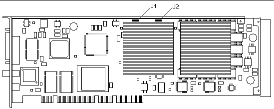 図 9-1 の J1 および J2 に示される、Expert3D カードの内部のマルチビュー入力ポートおよびマルチビュー出力ポートは、Expert3D カードから他のカードへケーブル接続をする際に使います。これらのポートはシステムのシャーシ内からのみ接続できます。