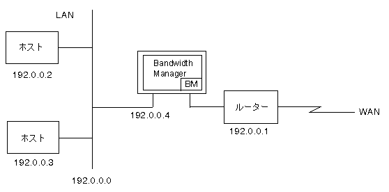LAN とルーター間にあるホスト上では、IP 透過モードで Solaris Bandwidth Manager を実行します。