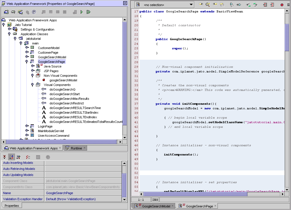 1. Under the GoogleSearchPage, expand the JSPs node and double-click the GoogleSearchPage JSP to open it in the IDE's source editor.