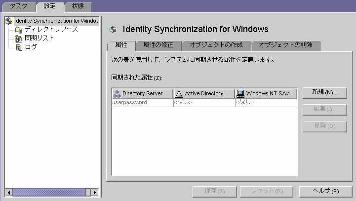 - 属性 : システム間で同期させる属性を指定するときは、このタブを使用する