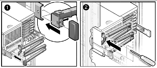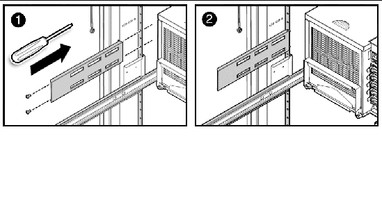 Note - If the CMA is not used, attach all end caps to the rails of the server. The SPARC Enterprise M4000 server uses two end caps. The SPARC Enterprise M5000 server uses four end caps.