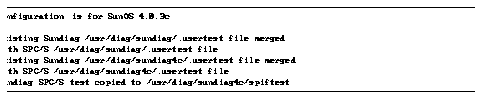 If you are using a SunOS 4.1 system, press the Return key to accept the default configuration. The script confirms your choice with the following message, and restores the Sundiag test file saved before the installation began: