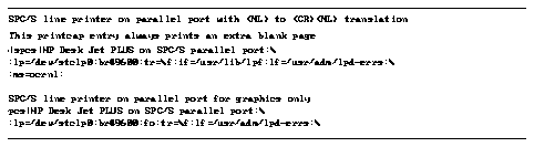 The following examples show common printcap entries for printers connected to a serial port and a parallel port.