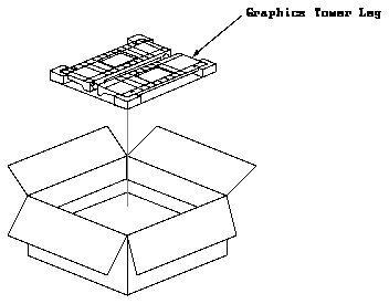 The Graphics Tower weighs about 40 pounds (18kg). Two people are needed to remove the Graphics Tower from the container.Remove the Graphics Tower legs from the shipping container, as shown in Figure 2-1.