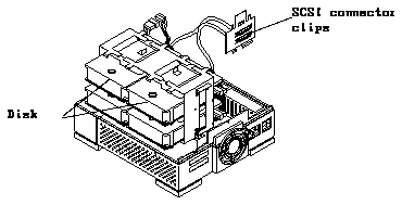 Figure 6-1 Disk Drives and SCSI Connector Clip