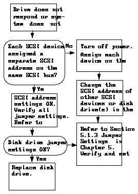 There are three jumper blocks on each of the 1.05-Gbyte disk drives. To determine if one of the jumper blocks has incorrectly set jumpers, refer to Section 5.1.3 "Settings Jumpers and Preparing the Disk Drive for Installation" in Chapter 5 to verify and set jumper settings. The troubleshooting flowcharts in Chapter 1 describe conditions where a SCSI address jumper or other jumper settings may be incorrectly set.