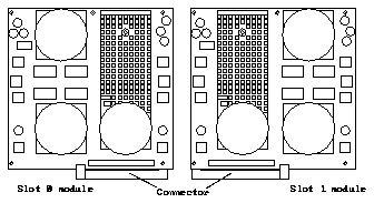 There are two dual SuperSPARC modules for the 600MP system board. The connectors and mounting rails are in different locations. The modules are slot specific and are not interchangeable. The locations of the module connector and the preinstalled mounting rails on the modules are specific to slot 0 or slot 1.