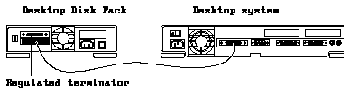 Use direct connection when you are connecting the first SCSI device in the SCSI bus to the desktop computer system by connecting one end of the SCSI cable to one of the SCSI ports of the DDP, and the other end of the SCSI cable to the SCSI port of the desktop system. You must connect a regulated SCSI terminator to the other SCSI port of the DDP, as illustrated in Figure B-1.