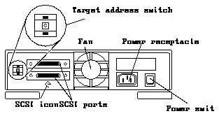 The 1.05 Gbyte disk drive is a Small Computer Systems Interface (SCSI) device. Each SCSI device in your system needs a specific and unique SCSI target address. The target address for the DDP is set with the target address switch at the back of the system unit.