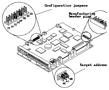 See Table 2-3 for a description of the configuration jumpers, and Table 2-4 for descriptions of the target address jumpers.