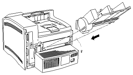 Note - Either the manual feed tray or the envelope feeder must be installed on the printer at all times to prevent light from entering the print cartridge through the opening on the back of the printer. Exposing the print cartridge to light can cause poor print quality.