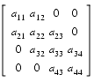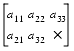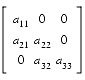 A triangular banded matrix can be stored using banded storage as shown below. Elements shown with the symbol